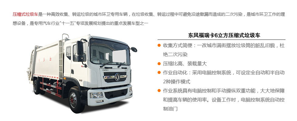 標(biāo)準(zhǔn): 壓縮式垃圾車:采用機(jī)、電、液聯(lián)動(dòng)控制系統(tǒng)、電腦控制及手動(dòng)操作系統(tǒng),通過填裝器和推鏟等裝置實(shí)現(xiàn)垃圾倒入、壓碎或壓扁,并將垃圾擠入車廂并壓實(shí)和推卸。