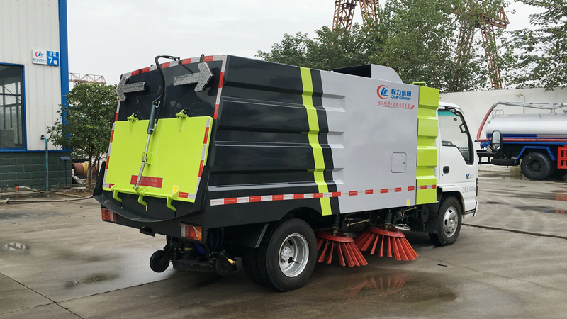 主要適用范圍:適用于小區(qū)道路、廣場、人行道的清掃。 清掃方式:四掃盤與吸盤進行吸掃結(jié)合,吸掃能力卓越;兩側(cè)掃把可同時工作,也可單側(cè)獨立工作。清掃裝置機構(gòu)簡潔可靠,帶避讓防撞功能。 工作原理:副發(fā)動機啟動通過皮帶帶動風機轉(zhuǎn)動排空垃圾箱內(nèi)的空氣,利用內(nèi)外的壓強差將垃圾、灰塵、等雜物吸進垃圾箱。 清掃能力:清掃作業(yè)寬度約2.8-3.2m,吸入粒度φ110mm,清掃速度每小時5-25 km,清掃時可噴霧狀水,全面杜絕二次環(huán)境污染。 底盤部分:五十鈴底盤,五十鈴4KH1CN5HS發(fā)動機國五排放130馬力,五十鈴MSB五檔變速器,帶空調(diào),方向助力,前橋2-2.5噸,后橋4.8噸,帶ABS,標配700R16輪胎(個別藍牌型號輪胎650R16),雙回路式油剎。單排駕駛室可翻轉(zhuǎn),雙排不可翻轉(zhuǎn)。 上裝部分:帶掃盤4把,江鈴副發(fā)動機(77馬力),三洋馬達,施耐德控件開關(guān),海普瑞斯電磁閥組,無級變速自動離合器,免維護式離心風機,不銹鋼垃圾箱4m3水箱1.5m3,尾部LED箭頭燈,手動泵應急系統(tǒng)。 可選配置:前沖、后灑、噴霧、自潔卷盤、作業(yè)監(jiān)控系統(tǒng)、輔助吸管裝置、推雪鏟等。